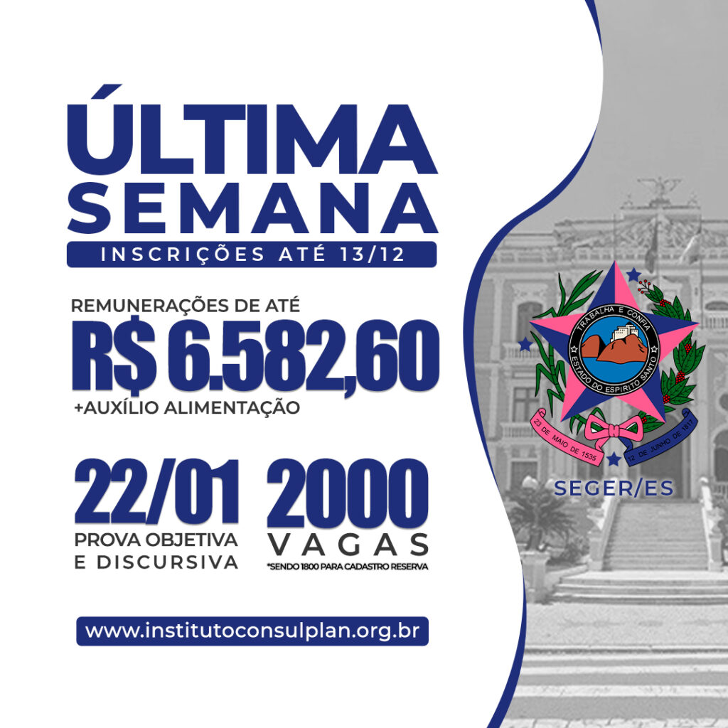 Inscrições para concurso do Governo do ES entram na última semana; salário passa de R$ 6 mil
