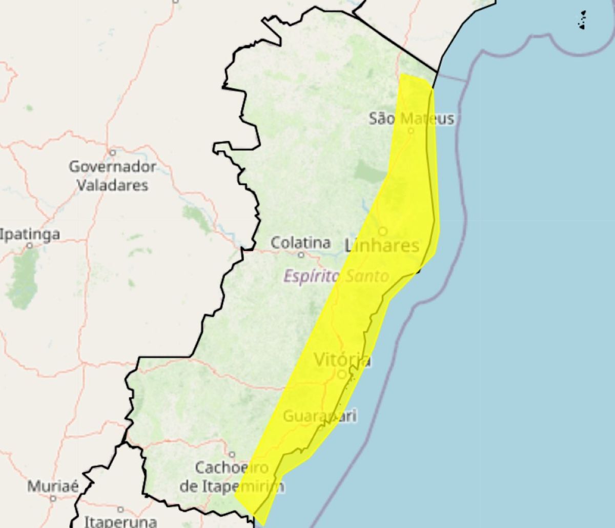 O Instituto Nacional de Meteorologia (Inmet) emitiu um alerta amarelo de acumulado de chuva para Guarapari. O aviso, com grau de severidade classificado como perigo potencial, é válido das 18h desta quarta-feira (2) até as 23h59 de quinta-feira (3). A previsão é de chuva entre 20 a 30 mm/h ou até 50 mm/dia, com baixo risco de alagamentos e pequenos deslizamentos em áreas vulneráveis.