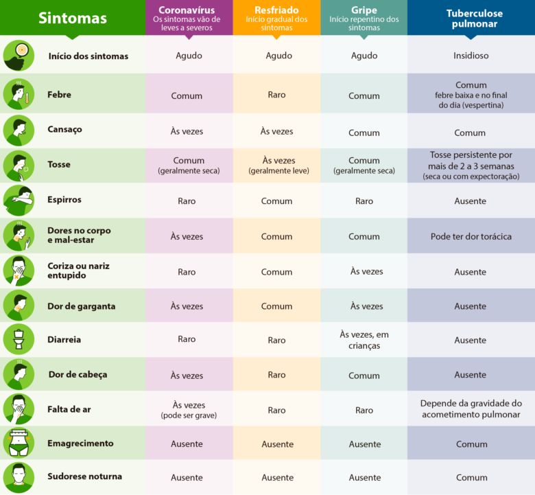 O Ministério da Saúde desenvolveu um material que pode auxiliar a população a identificar os sintomas de cada quadro clínico. Confira: