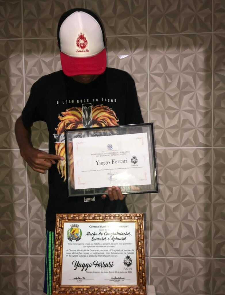 O jovem de 17 anos, Yaggo Alves Ferrari, conhecido como MC Yaggo Ferrari, conseguiu realizar o sonho de infância e gravou o primeiro vídeo clipe com a própria música. Nascido e criado no bairro Adalberto Simão Nader, em Guarapari, o rapaz sempre teve paixão pela música e por esportes em geral, o que foi essencial para a concretização do grande sonho