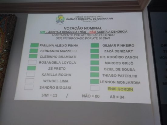 Placar da votação que culminou no afastamento e investigação do vereador Dito Xaréu. Foto: Arquivo/Folha.