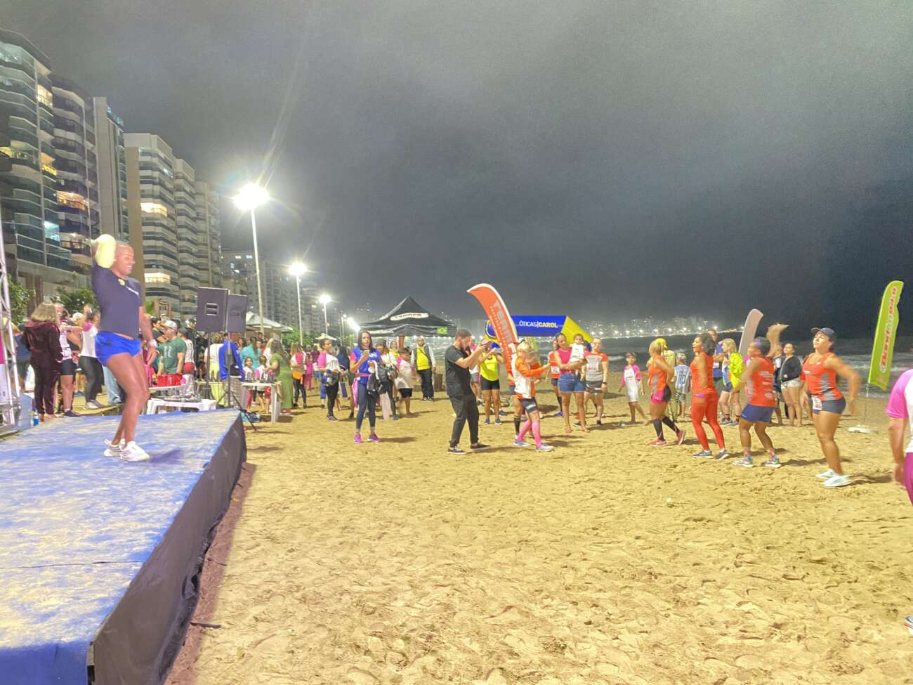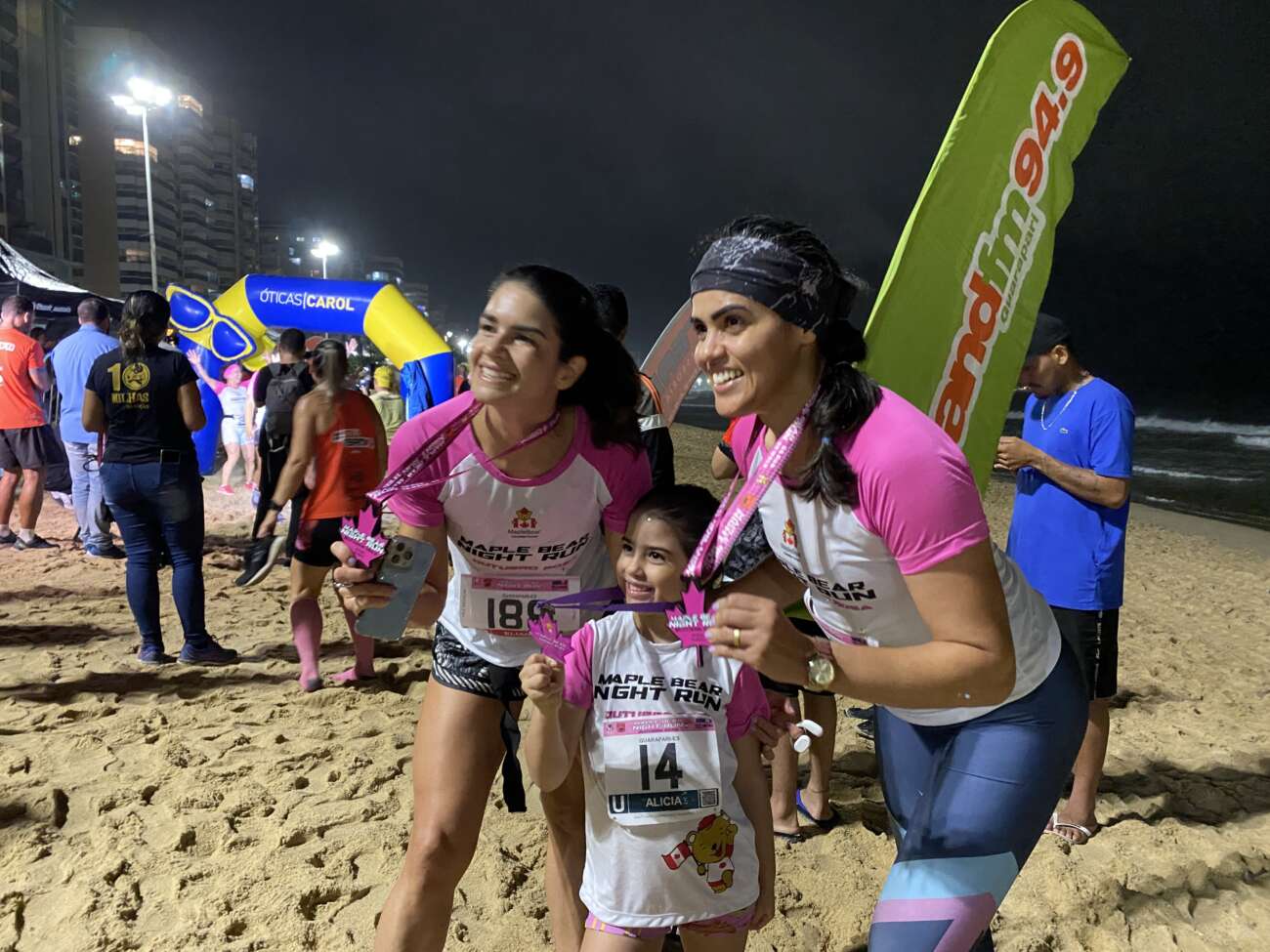 As areias da Praia do Morro, em Guarapari, receberam no sábado (21) centenas de corredores para participarem da Maple Bear Night Run Outubro Rosa. Nem a chuva fina impediu que, além de atletas, a corrida reunisse pais e alunos na programação, que também contou com música e aulas de dança.