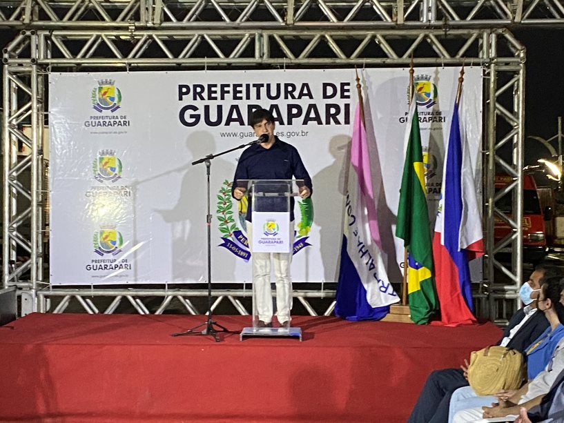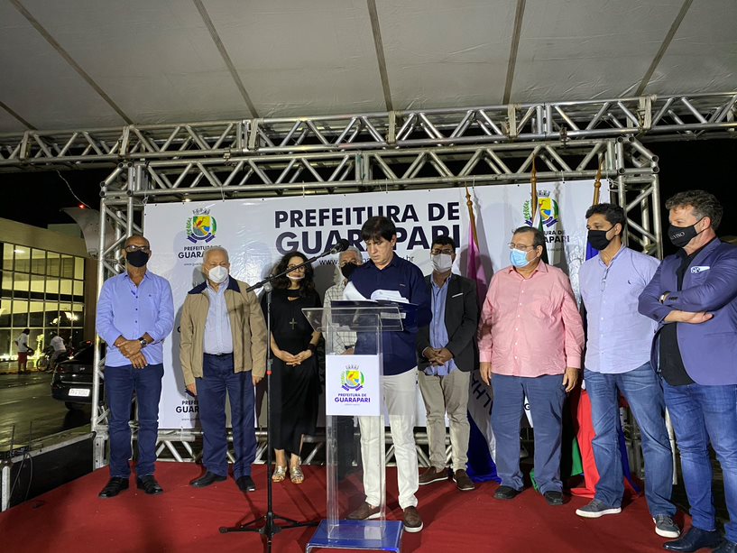 Durante a solenidade, o prefeito Edson Magalhães discursou sobre a entrega do Mercado Produtor Rural, sancionou a Lei de Incentivos Fiscais para empresas que vão se instalar em Guarapari, e também falou a respeito do processo político do próximo ano e do andamento das obras do hospital da cidade.