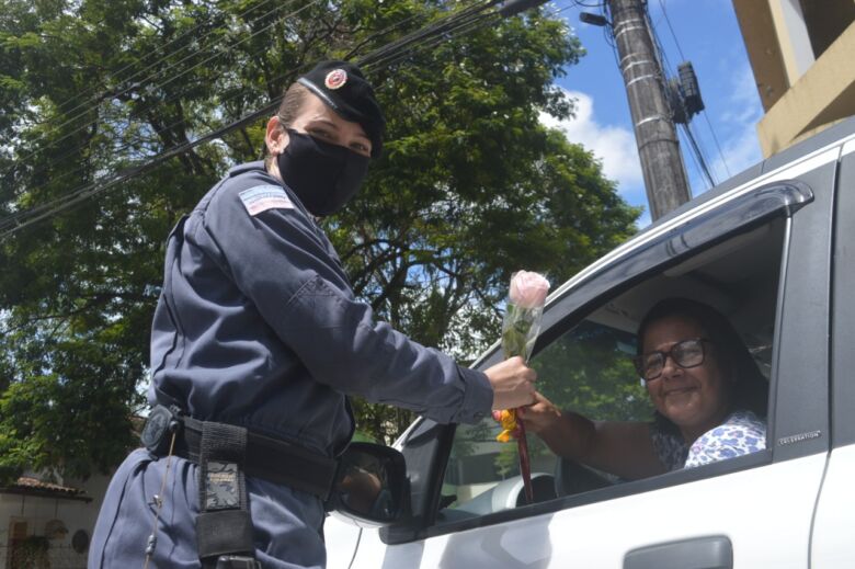 Ao todo foram distribuídas cem flores doadas por empresários, associações e bancos do município, que, de acordo com a guarnição, sempre apoiam essas intervenções.