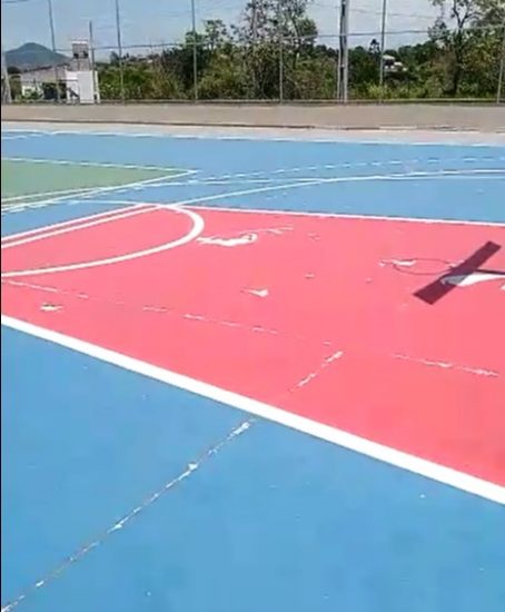 Um morador do bairro Meaípe, em Guarapari, enviou vídeos do loteamento Belo Horizonte, na região, se queixando da obra da quadra poliesportiva construída na Praça das Roseiras. Segundo ele, que mora em frente à praça, a tinta do chão e os rodapés já estão se soltando e a obra, de acordo com a placa informativa, teve a data de conclusão em 14 de setembro deste ano.