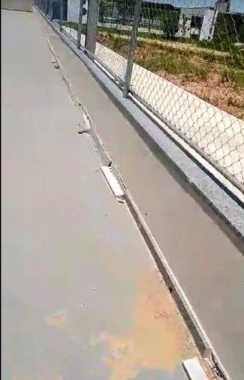 Em nota, a prefeitura disse que a obra foi realizada através de convênio com Governo Federal e a empresa será notificada para fazer a retirada do material, além da readequação da pintura e rodapé. “Como o projeto do Governo Federal não contempla cobertura, o município pretende realizar a cobertura do espaço com recursos próprios para a entrega do equipamento”, informou o órgão.