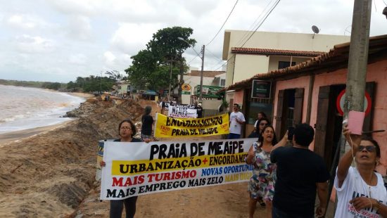 O grupo S.O.S Meaípe realizou na manhã de ontem (02) uma manifestação, no sinal de trânsito próximo ao supermercado MultiShow, com objetivo de chamar a atenção das autoridades municipais e estaduais para a agilidade nas obras e um maior investimento na orla de Meaípe, que perdeu sua área de extensão de areia recentemente (relembre aqui).