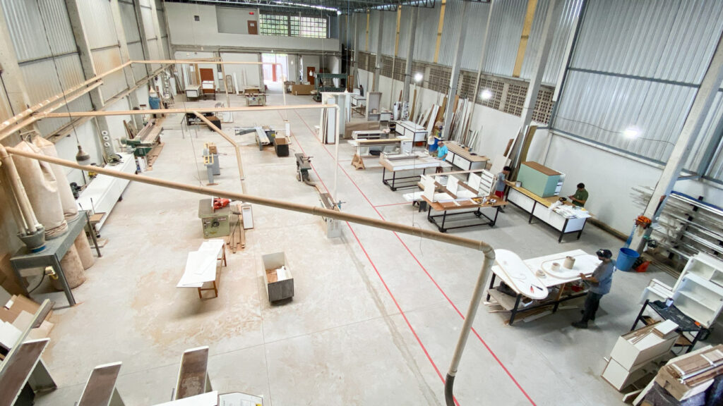 A Moreira Marcenaria ocupa um galpão de no bairro Jardim Europa, em Guarapari, e emprega 12 pessoas, entre marceneiros, ajudantes, auxiliar administrativo e projetista.