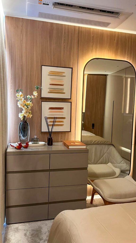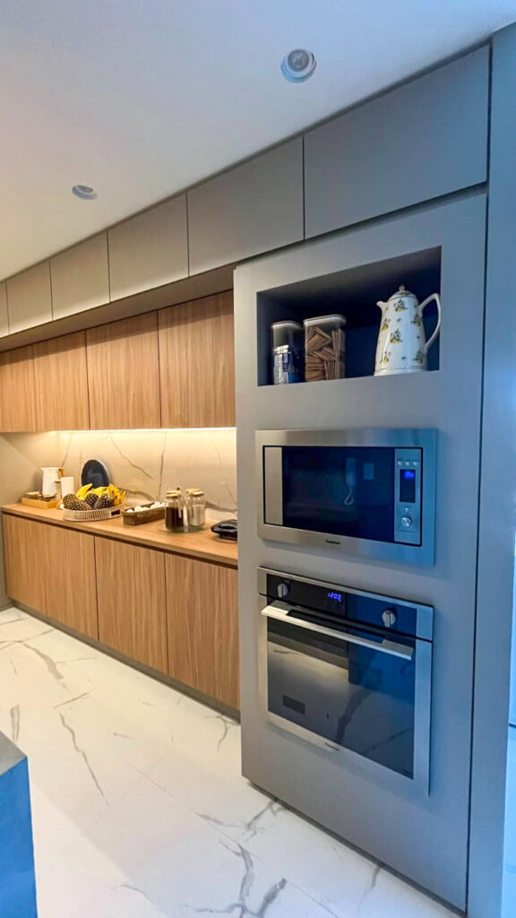 A dupla se orgulha em afirmar que praticamente todos os clientes da marcenaria são indicações de outros clientes ou de arquitetos(as), resultado do trabalho feito com dedicação, qualidade, honestidade e alto padrão de execução e de acabamento. “Com um segmento feito de centenas de empresas, sejam pequenas, médias ou grandes, é muito importante se destacar. Entre os nossos principais diferenciais estão: o nosso conhecimento e envolvimento em todo processo; a lealdade com o cliente, entregando exatamente aquilo que foi concebido no projeto; o cuidado em dar a maior durabilidade possível aos produtos, por exemplo, nossos painéis que encostam no piso são feitos de madeira maciça nas pontas para que a umidade não danifique o MDF; e, por último, mas muito importante, construímos uma grande expertise em lacas e pinturas em MDF, permitindo infinitas combinações de tons e cores”.