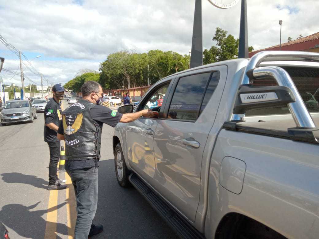 Durante a atividade, antenas corta-pipa foram doadas e instaladas gratuitamente para os motociclistas que passavam pelo local