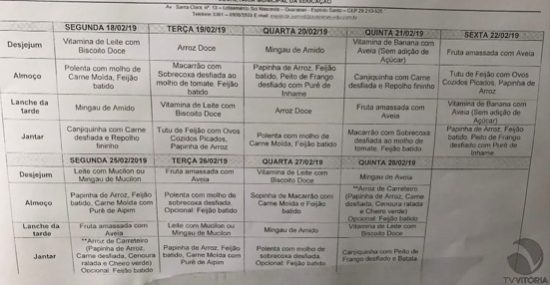 Um dos cardápios avaliados. Foto: TV Vitória.