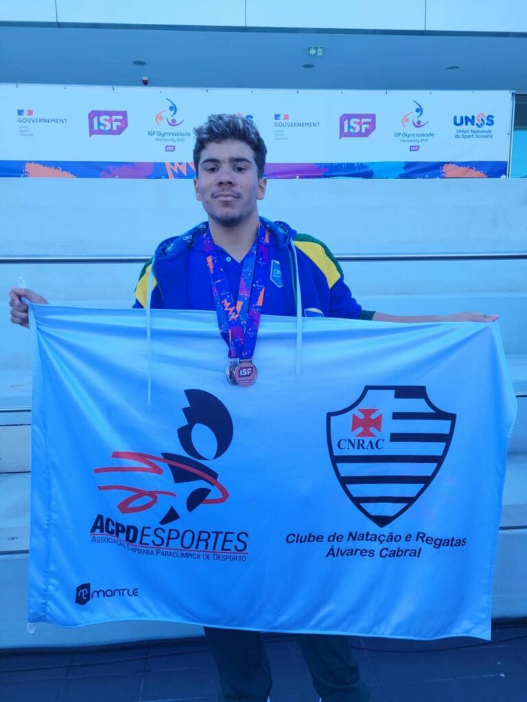 Breno Costa, paratleta vitorioso de Guarapari, brilhou mais uma vez nas piscinas. O nadador participou do maior evento do mundo para estudantes 16 a 18 anos, o Gymnasiade 2022, em Normandia, na França, e conquistou mais três medalhas para a coleção.