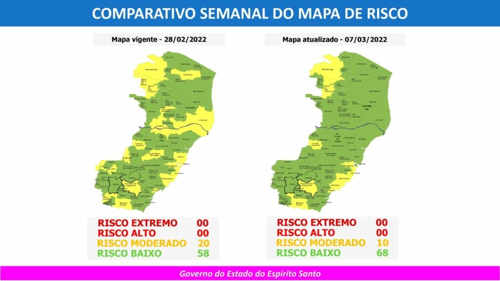 Número de cidades do ES em Risco Moderado cai pela metade no 97° Mapa de Risco Covid-19