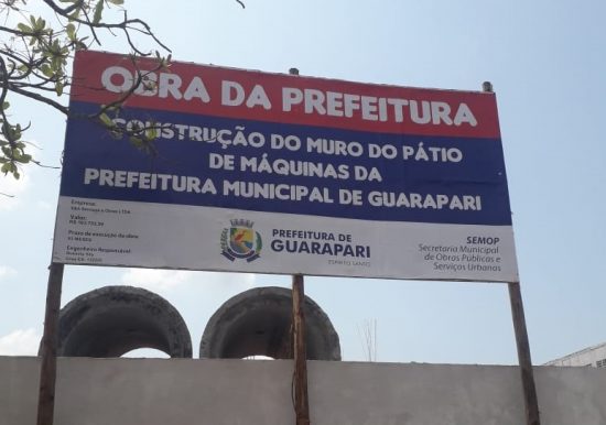 Uma placa, fixada nos arredores do terreno onde seria a futura nova sede da Prefeitura de Guarapari, na Av. Jones dos Santos Neves – Lagoa Funda, indica que o local será utilizado para instalação do pátio de máquinas do município. A informação dá conta da construção do muro, orçado em pouco mais de 160 mil reais.