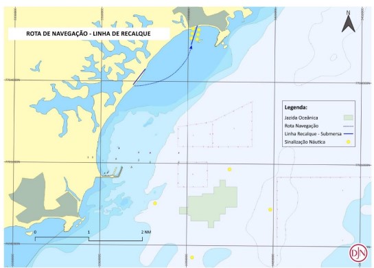 Solicitamos, outrossim, visando manter a Segurança da Navegação e a salvaguarda da vida, que embarcações não pertencentes à obra, se atentem com restrição/atenção ao navegar pela área dedicada para operação da linha de recalque, não colocando redes na rota de navegação da tubulação de recalque para evitar danos aos petrechos de pesca. Em caso de dúvida, manter comunicação via rádio através do Canal 16”.