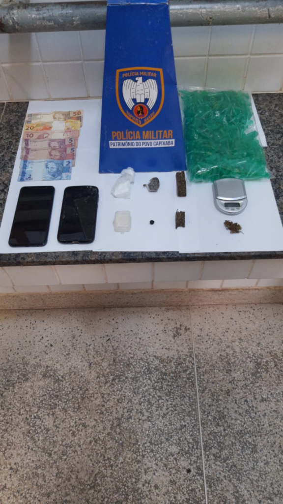 No início da manhã, em sequência a sétima fase da Operação Sentinela, militares do 10º batalhão cumpriram quatro mandados de busca e apreensão em Guarapari, todos expedidos pela 1ª Vara Criminal do município. A ação ocorreu nos bairros Jabaraí, Olaria, Paturá e Praia do Riacho. Foram detidos dois suspeitos e diversos materiais ilícitos localizados: uma pedra e uma porção de cocaína, uma porção, três pedaços pequenos e três pés de maconha, quatro unidades de haxixe, uma porção de skank, três porções em pó e sete comprimidos de ecstasy, quatro balanças de precisão, dois frascos vazios de lança perfume, material para embalo e endolagem de entorpecentes, quatro celulares, duas munições intactas de calibre .22, uma capa de colete e R$416 em espécie.