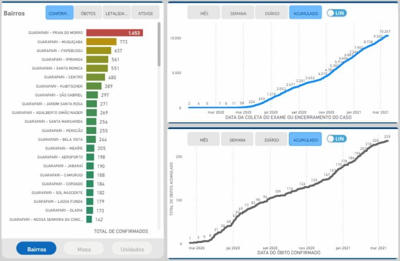 Painel Covid-19: Guarapari registra 10.267 casos confirmados