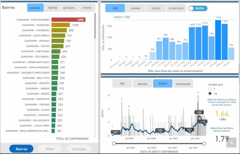 Painel Covid-19: Guarapari registra 13.847 casos da doença e aumento da taxa de mortalidade