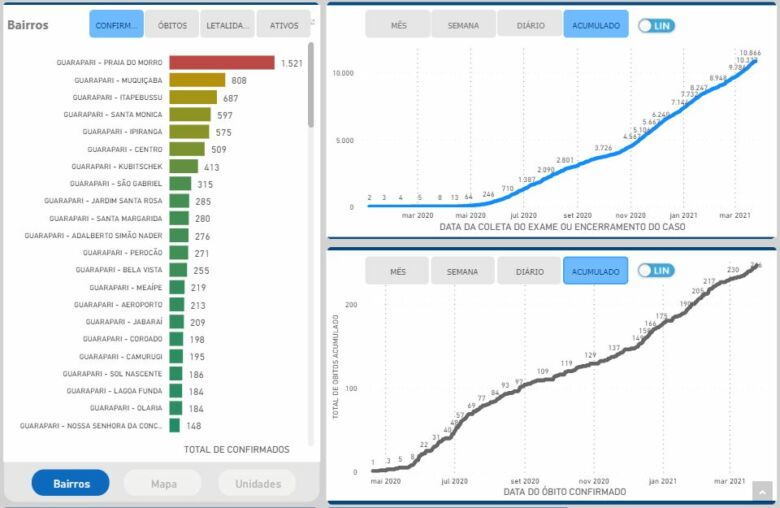 Painel Covid-19: Guarapari teve 259 novos casos e 7 mortos pela doença nesta semana