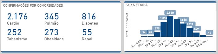 Na atualização recente o Painel também aponta um total de 9.981 pacientes curados da doença. Até o momento, 27.302 testes foram realizados no município e 6.528 casos ainda estão sob suspeita. O número total de casos notificados é de 33.541.