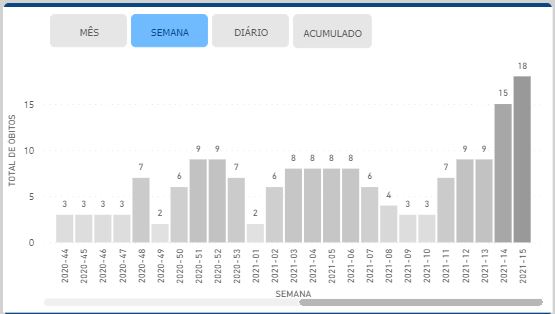 Na semana anterior, a cidade já tinha registrado um número de óbitos preocupante, com 15 casos. Antes disso, o recorde teria sido a semana entre o fim de junho e o começo de julho de 2020, que registrou 13 óbitos. Já são 35 óbitos desde o início do mês de abril.