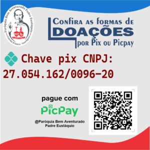 Para custear a aquisição de banheiros químicos com chuveiros para a higienização, também está acontecendo a arrecadação de recursos diretamente através do Pix ou PicPay da Paróquia Bem Aventurado Padre Eustáquio. As informações para doação estão disponíveis na imagem abaixo.