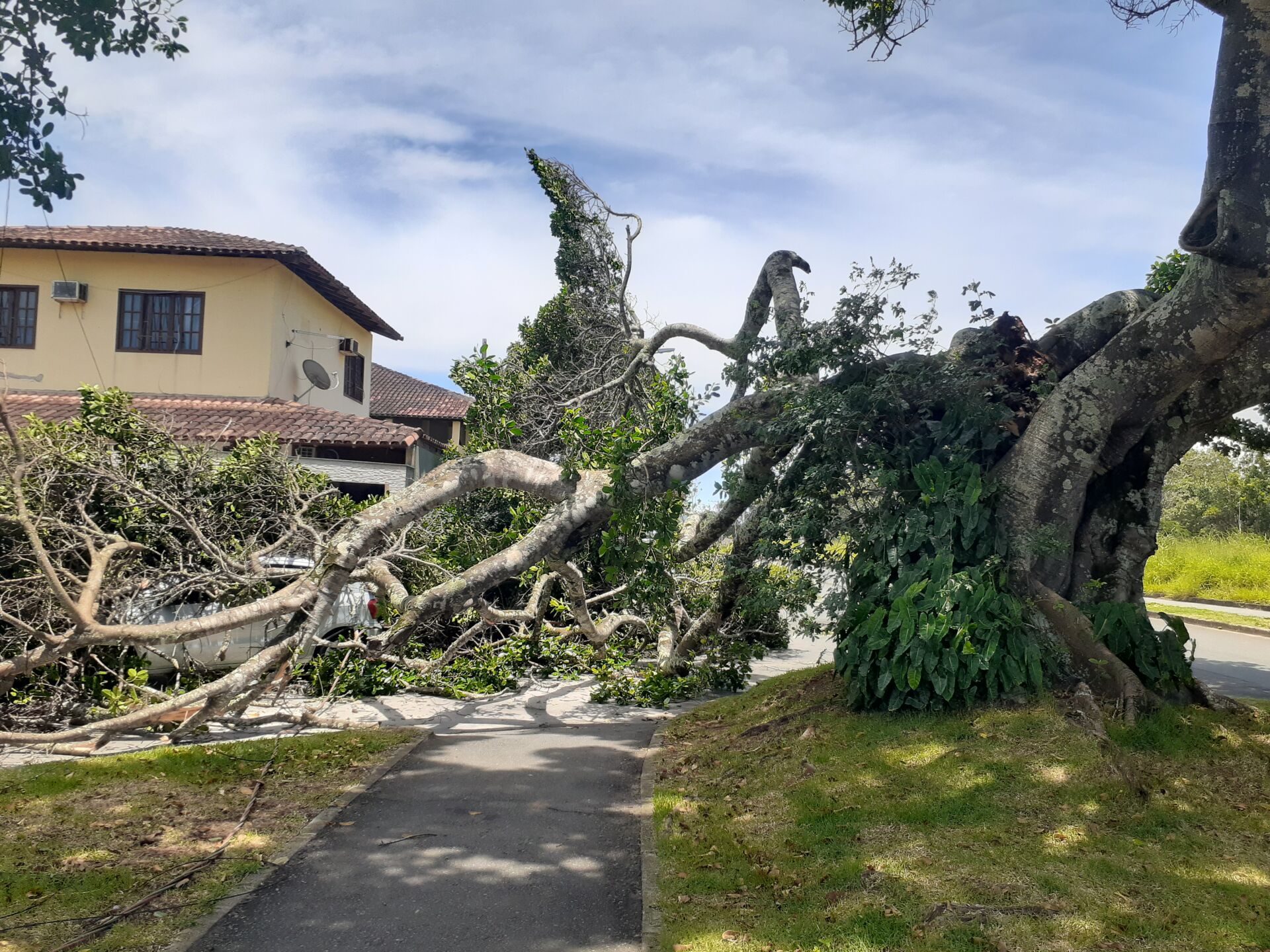 Moradores das residências próximas relataram um grande estalo e logo em seguida o barulho da queda. “Foi um susto, meus filhos brincavam no quintal e gritaram, até ver o que tinha acontecido, imaginei que era algo grave com eles. Por sorte, o prejuízo ficou no âmbito material”, descreveu Níger Samuel Silva, proprietário do veículo atingido e morador da casa em frente.