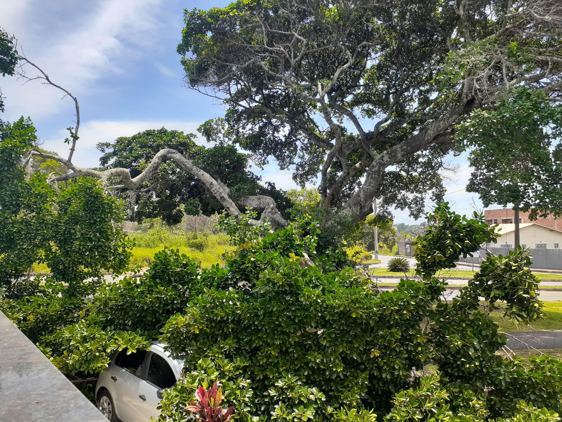 Parte de árvore centenária cai sobre carro em Guarapari