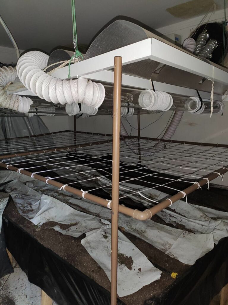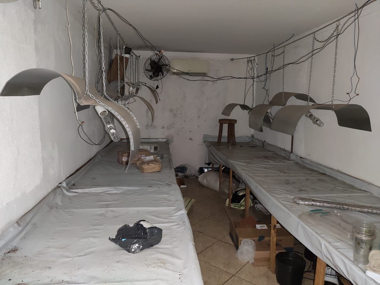 Na residência, também foi localizada uma estufa desativada dentro do guarda roupa. No interior, havia ventiladores pequenos, exaustores, lâmpadas, extensão e raízes secas. O suspeito foi autuado em flagrante pelo crime de tráfico e encaminhado ao Centro de Triagem de Viana (CTV).