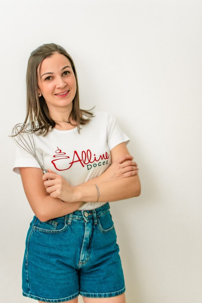 Outra profissional da confeitaria que iniciou fazendo cupcakes e doces, foi Aline Rodrigues Bigossi, que atualmente comanda com o marido, Tiago Buback Abreu, o Alinne Doces.