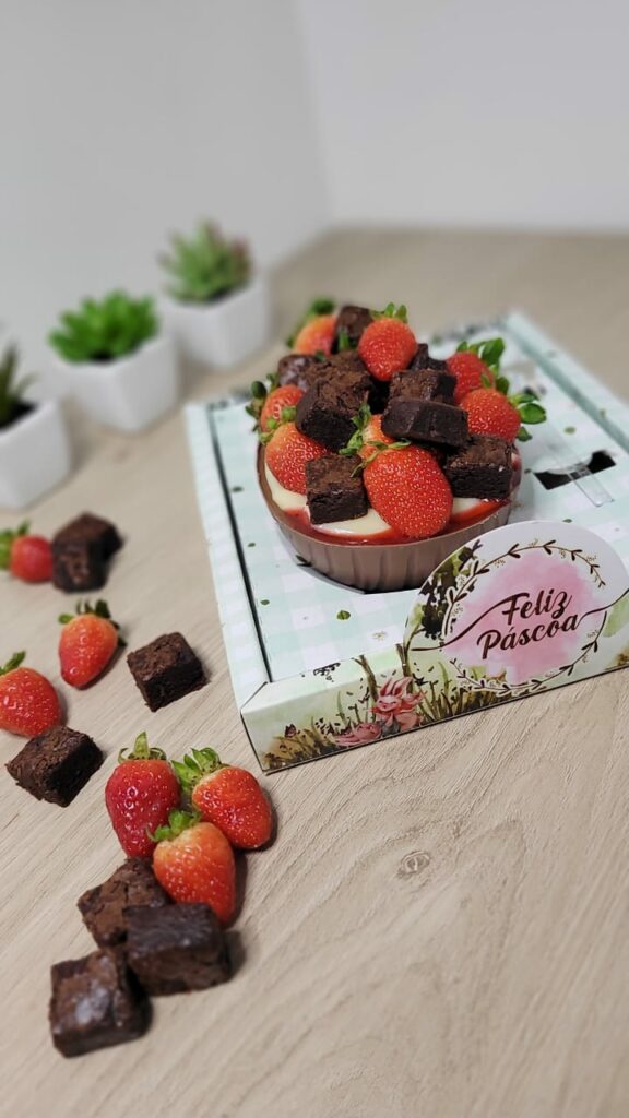“A ideia dos ovos de Páscoa veio com a demanda dos clientes. Como já trabalhava com venda porta a porta, começaram a perguntar se fazíamos ovos de Páscoa. Mas não queria fazer aquele ovo de colher tradicional. Foi aí que surgiu a ideia de juntar o brownie com o ovo de Páscoa. Acredito que as pessoas estão querendo cada dia mais produtos personalizados e com mais sabor. Nós, empreendedores locais, conseguimos entregar além do que apenas aquele ovo tradicional de supermercado só com chocolate”.