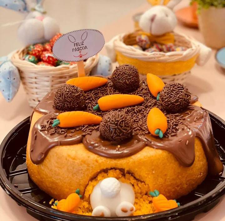 Há bolo, bolo de caneca, kit para decorar o próprio ovo de Páscoa, além dos tradicionais ovos de Páscoa de vários sabores e recheios