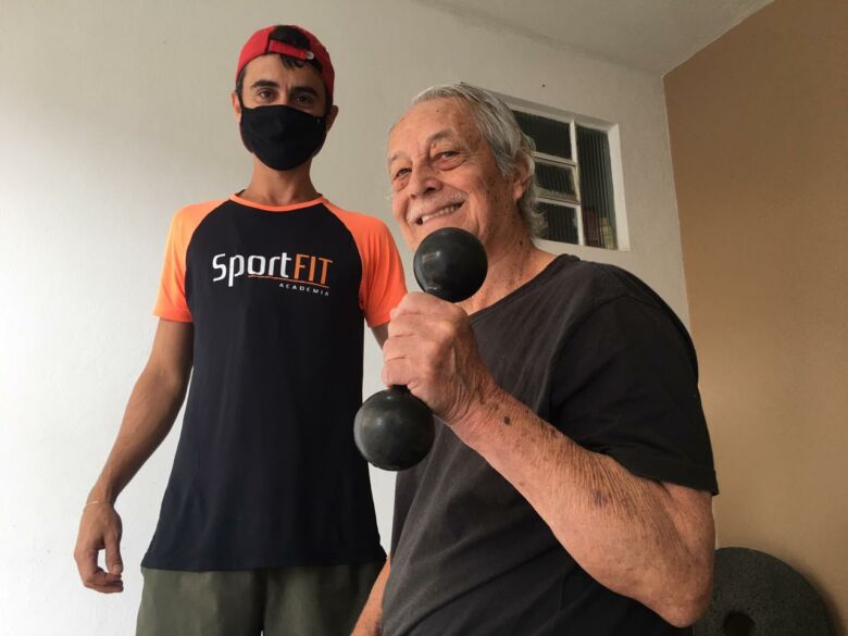 Aluno do Eriki Gaigher, Jamil Denadai, de 79 anos, sofreu um acidente vascular cerebral (AVC) que comprometeu os movimentos de um dos lados do corpo e o deixou acamado por trinta dias em agosto de 2019. Com apenas quatro meses treinando duas vezes por semana em casa, revelou que já vê muitos avanços.
