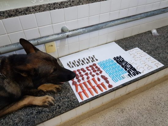 Com o apoio do cão farejador Mike, policiais militares apreenderam maconha, crack e cocaína