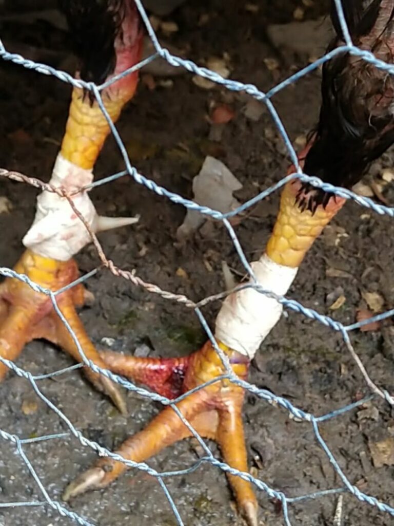 A maioria das aves portava acessórios para briga, como biqueiras de aço e esporas. Foto: Divulgação