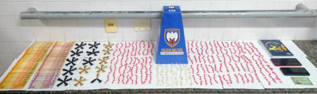 Durante patrulhamento, na noite dessa segunda-feira (06), uma equipe do 10º Batalhão da Polícia Militar do Espírito Santo (PMES) deteve uma mulher e apreendeu com ela 742 pedras de crack, 73 pinos de cocaína, dois aparelhos celulares e uma quantia de R$ 810,00 em espécie, no bairro Itapebussu, em Guarapari.
