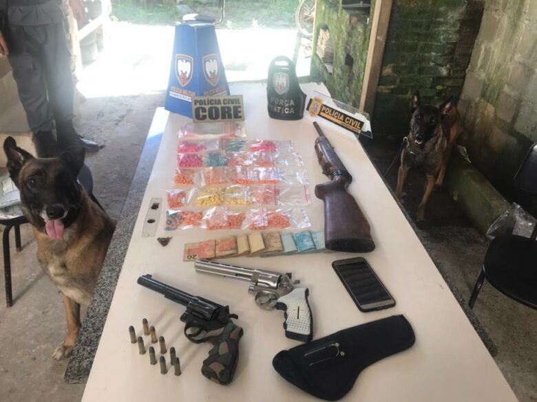 O resultado da ação foi a prisão de um suspeito de 26 anos e nas apreensões de dois revólveres calibre 38; nove munições; 1.760 comprimidos de ecstasy; uma espingarda de pressão adaptada para calibre 22 e R$ 6.030,00, em espécie.