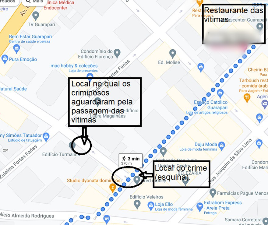 mapa organizado pela Deic de Guarapari mostra em detalhes a dinâmica do crime.