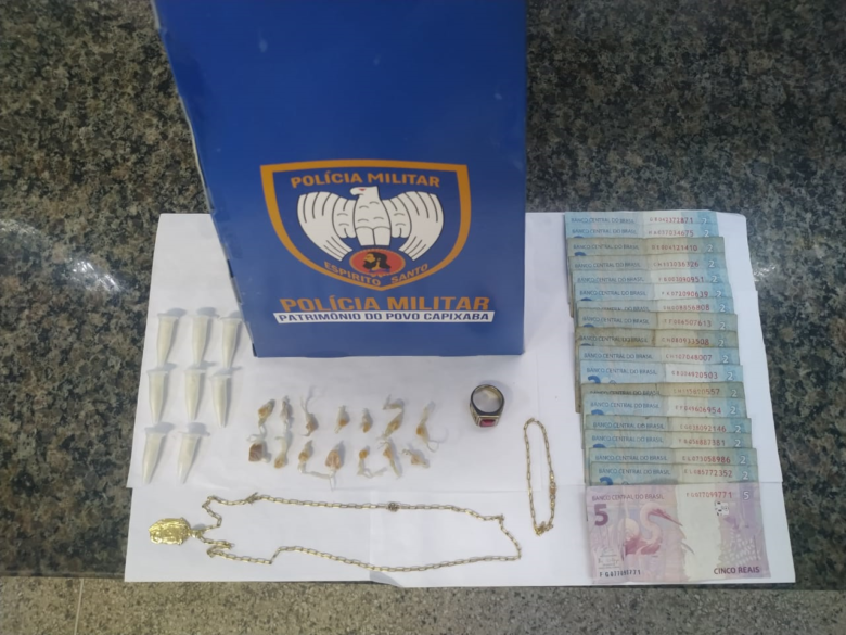 O abordado entregou ainda nove pinos utilizados para embalar cocaína, nove pinos contendo cocaína, um triturador de maconha, 30g de substância para preparo de cocaína, uma balança de precisão, além de materiais utilizados para o embalo e comercialização de drogas.