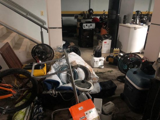 Questionado sobre os bens furtados, Evaldo conduziu os policiais até um a entrada de um galpão. De acordo com a Polícia Civil, logo na entrada foram encontrados inúmeros objetos, como um fogão, uma geladeira, dois freezers, cortadores de grama, entre outros. No primeiro pavimento, onde os policias constaram que se tratava da residência de Ryan Borges Rodrigues, envolvido com o tráfico de drogas, foi encontrada uma adolescente, namorada do Ryan, além de outros bens furtados como três ventiladores, três botijas de gás, diversos eletrodomésticos, perfumes, taças, facas e celulares.