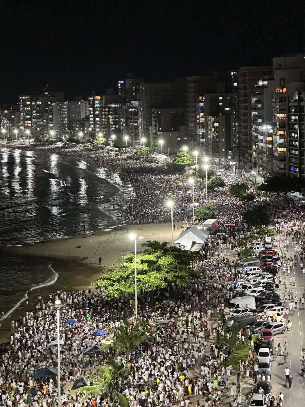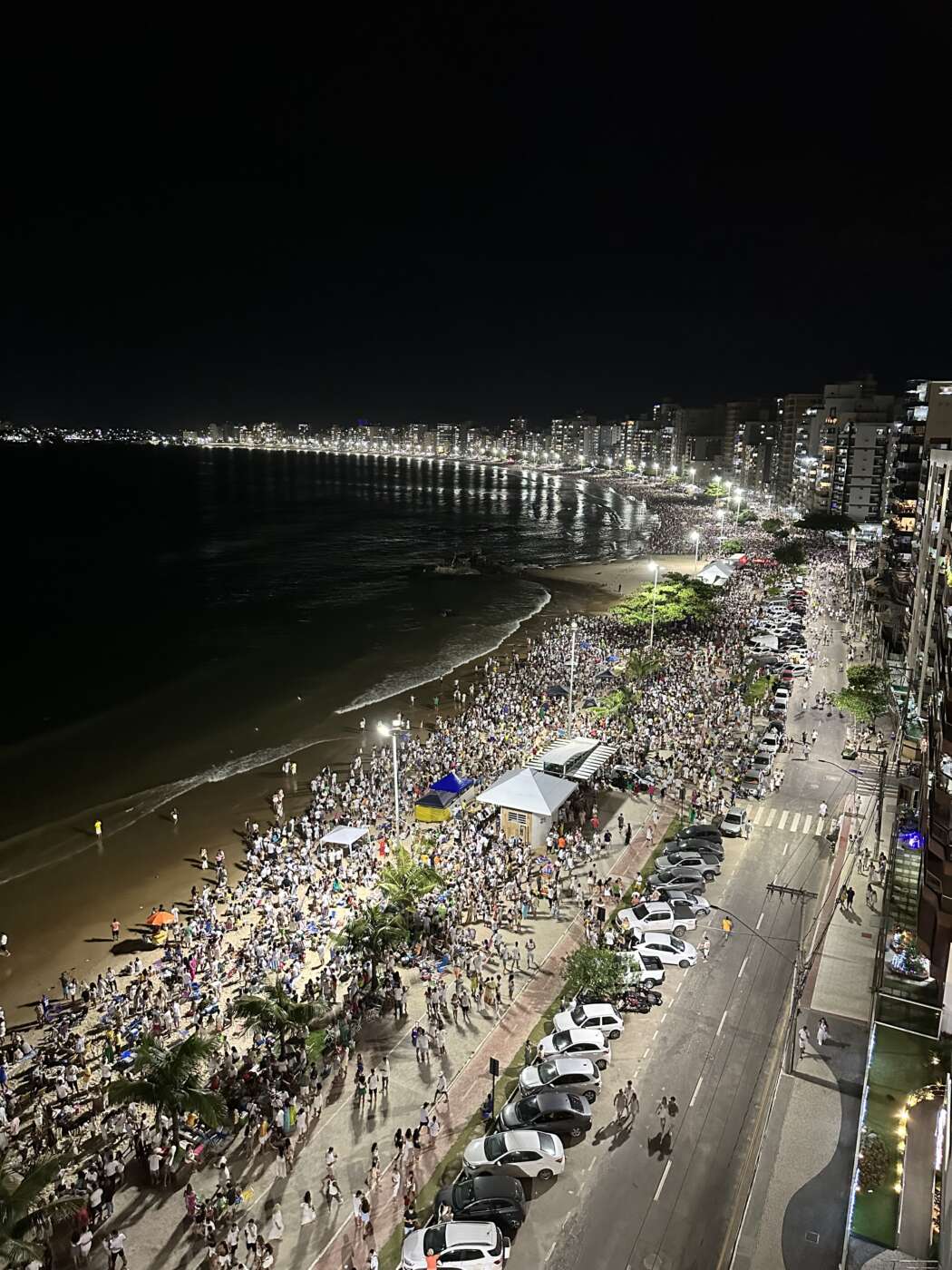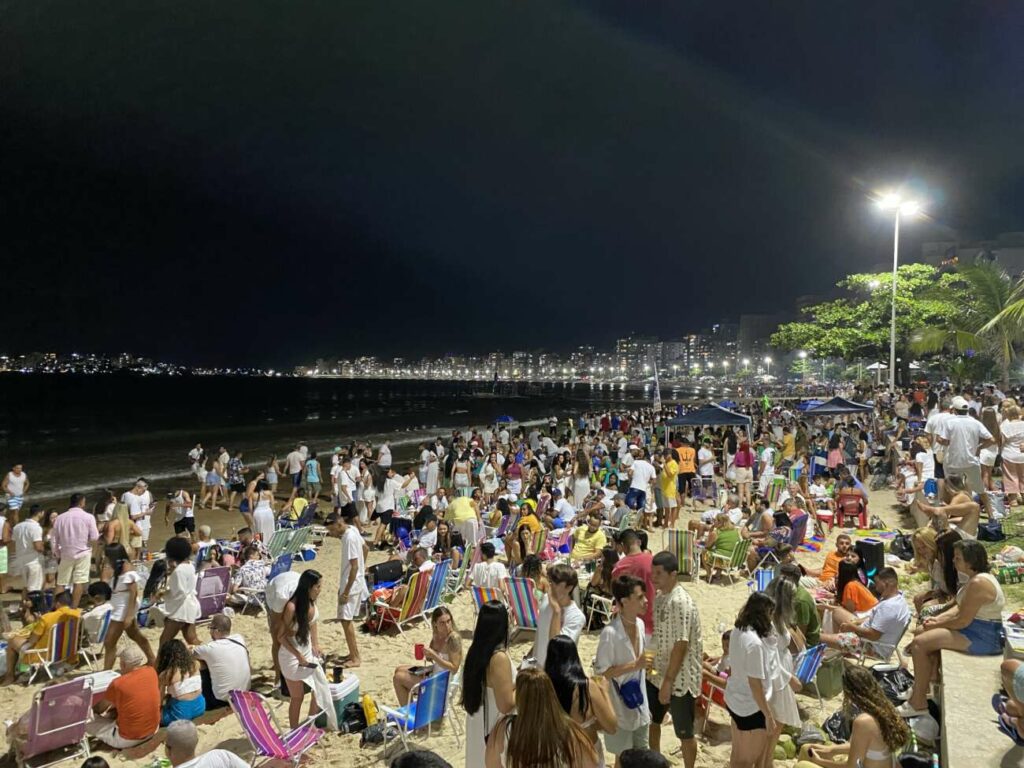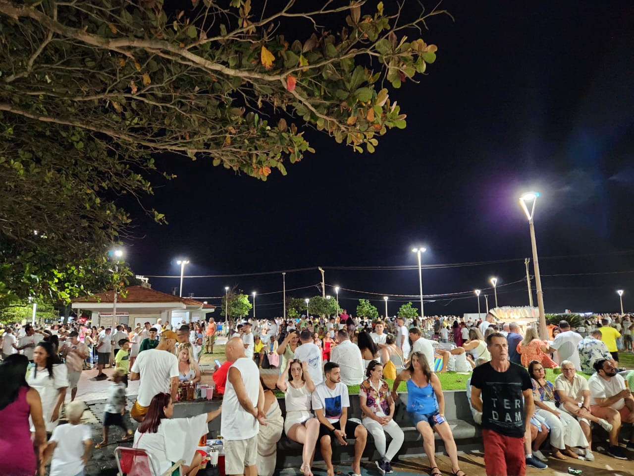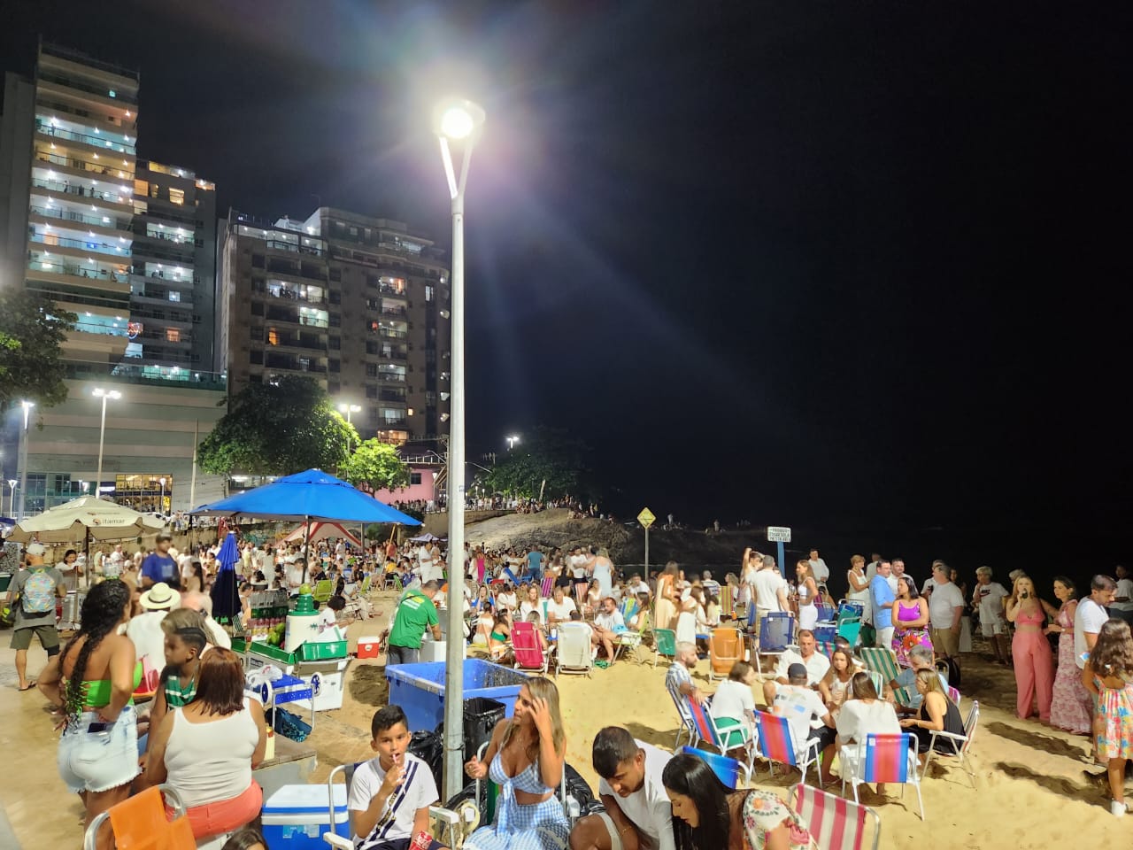 No Centro, o movimento já era intenso por volta das 22h30. Turistas e moradores ocupavam toda a extensão da areia e do calçadão da Praia das Castanheiras. Alguns estabelecimentos próximos à praia também aproveitaram a movimentação e mantiveram o funcionamento normal durante a noite.
