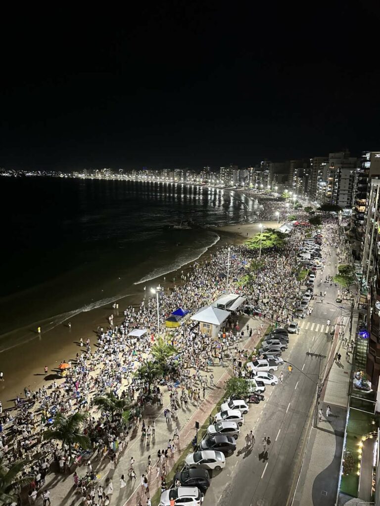 Praia do Morro e Centro tem Réveillon com fogos e muitos turistas em Guarapari