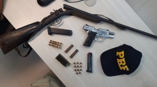Na tarde de ontem (11), a Polícia Rodoviária Federal (PRF) apreendeu armas e munições no interior de uma caminhonete em Guarapari durante fiscalização de combate a criminalidade no Km 343 da BR 101.