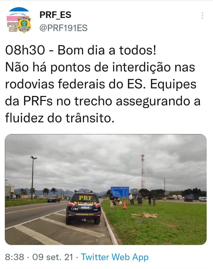 No entanto, na manhã desta quinta-feira (09), a rede social da Polícia Rodoviária Federal – PRF divulgou que não há mais pontos de interdição nas rodovias do Estado. E informou que as equipes da PRF estavam assegurando a fluidez do trânsito.