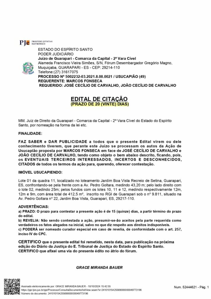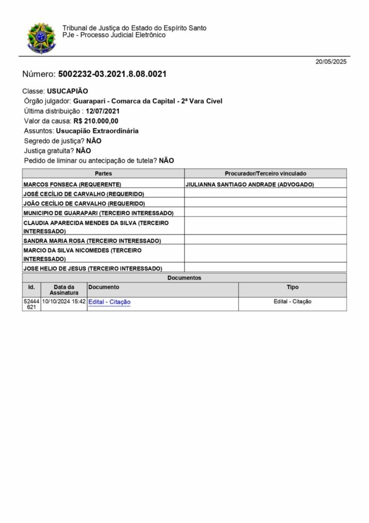 Processo Nº 5002232-03.2021.8.08.0021 Da Comarca da Segunda Vara Cível de Guarapari – do Tribunal de Justiça do ES