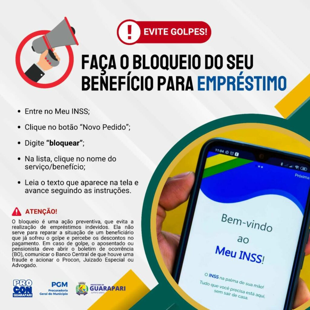 De acordo com Ewerton de Jesus Maximino, supervisor do Procon de Guarapari, “são muitos os registros de reclamações de aposentados que estão recebendo descontos de empréstimos consignados que não solicitaram. Como forma preventiva, o bloqueio no aplicativo é uma opção para evitar esse tipo de golpe. Por vezes o idoso não vai saber como fazer o bloqueio, por isso pedimos sempre aos familiares para ficarem atentos e ajudar os idosos a acessarem o aplicativo”.