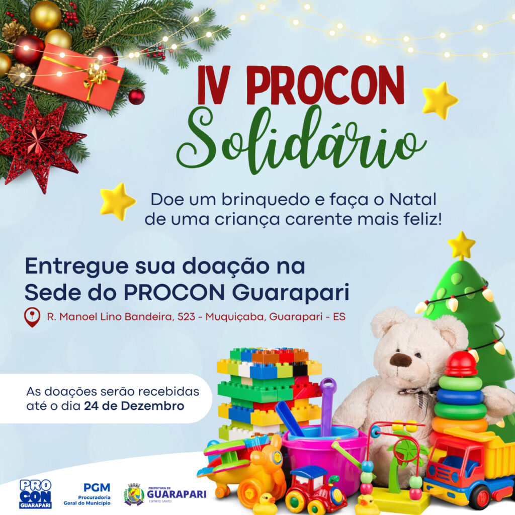 O Procon de Guarapari lançou a IV edição do Procon Solidário, campanha que tem o objetivo de arrecadar brinquedos que serão doados para o Natal de crianças carentes do município.
