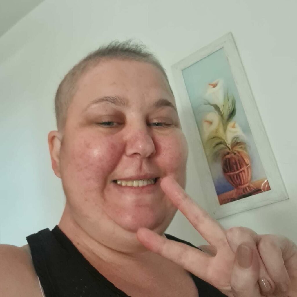 Lidiane fez 10 sessões de radioterapia e viu os cabelos caírem. “Mas pelo menos foi resolvido! Hoje a doença está estabilizada, faço fisioterapia. No entanto, continuo com a quimioterapia de 21 em 21 dias. Ando, tomo banho e me cuido sozinha. Somente a mão e a perna direita que tenho um pouco de dificuldade, mas estou bem melhor”.