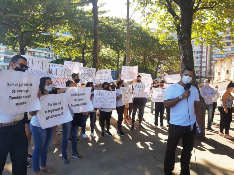 O Márcio da Silva Santos é proprietário do Dal’mare Restaurante e participou da manifestação. Ele explica que o horário restritivo não está sendo aplicado para outros setores da cidade. “A maioria do nosso segmento funciona no horário noturno. Não conseguimos entender essa lógica de até as 16h no domingo e 22h nos dias de semana, sendo que a gente vê outros segmentos funcionando com horários mais estendidos e praias e outras demandas com um maior número de aglomeração”, explicou.