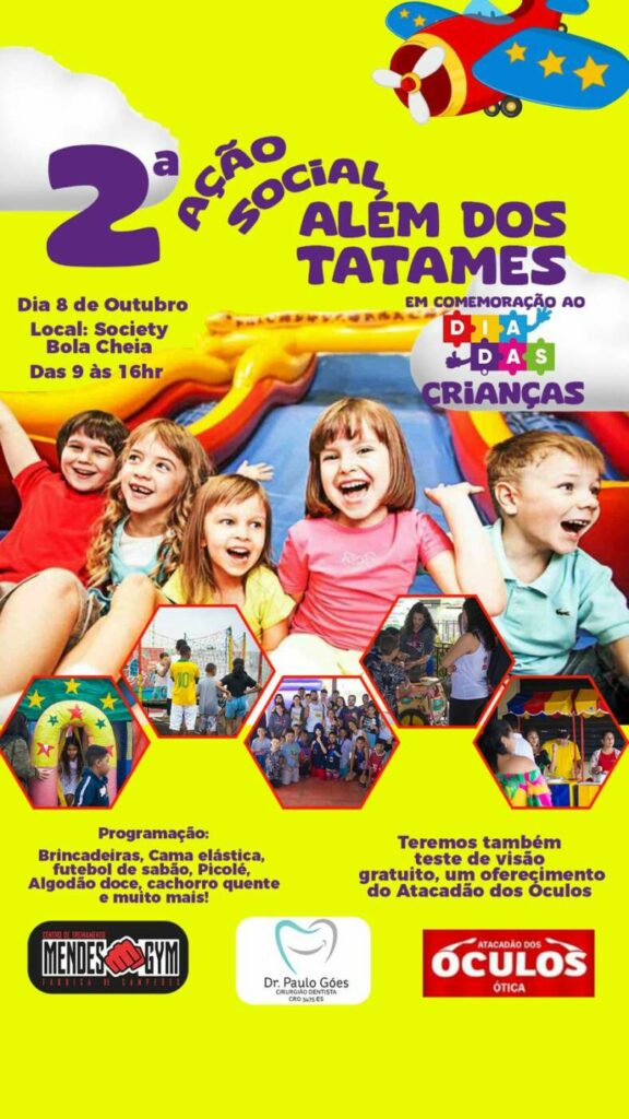 “A ação social é para comemorar com as crianças com brincadeiras, cama elástica, algodão doce, cachorro quente e muito mais. Este ano teremos a particapação do Atacadão dos Óculos fazendo teste de visão, além de sorteio de algumas armações. Também haverá o apoio de um dentista que atenderá as crianças do projeto”, contou Michel Mendes, coordenador do projeto.